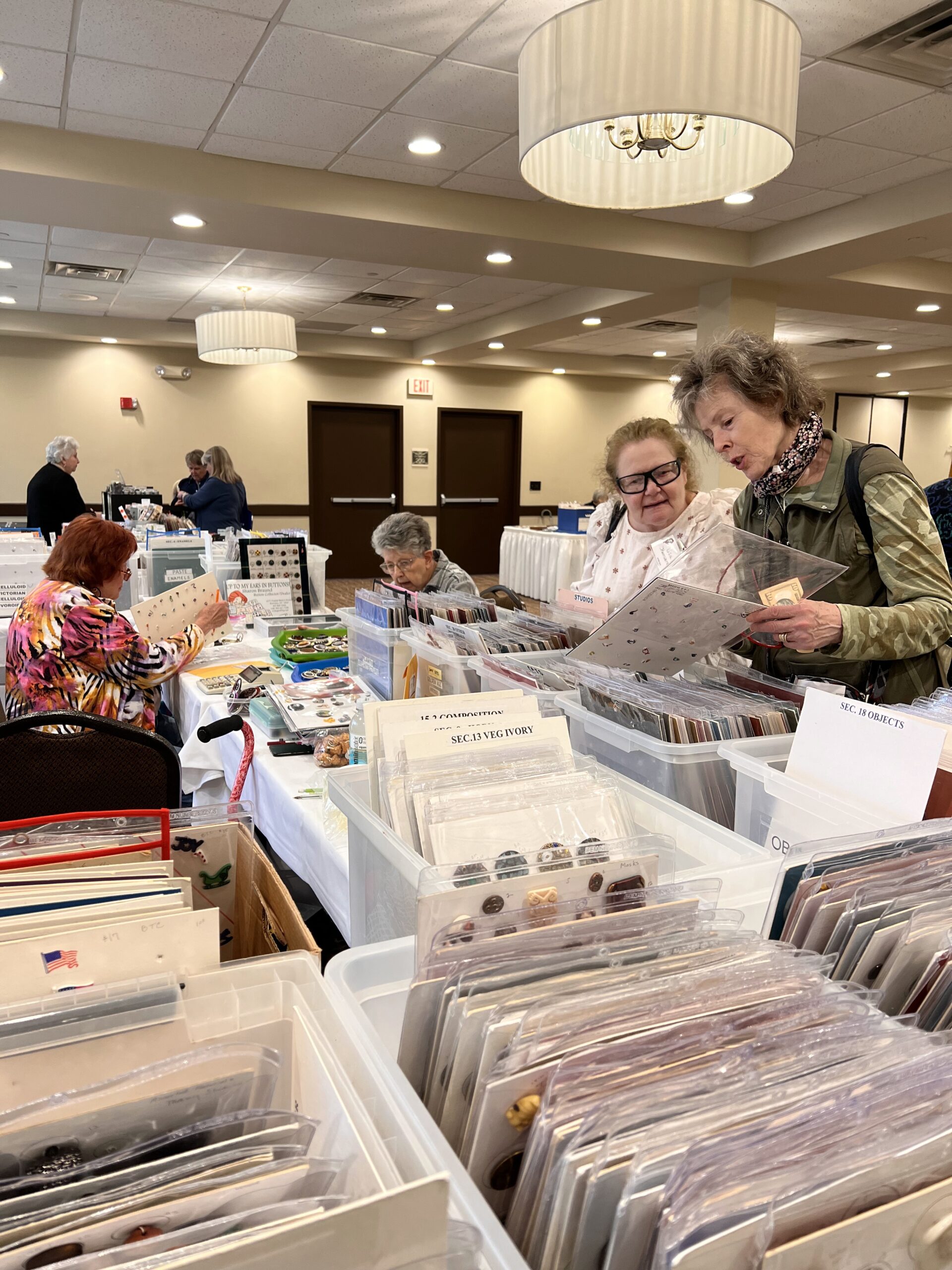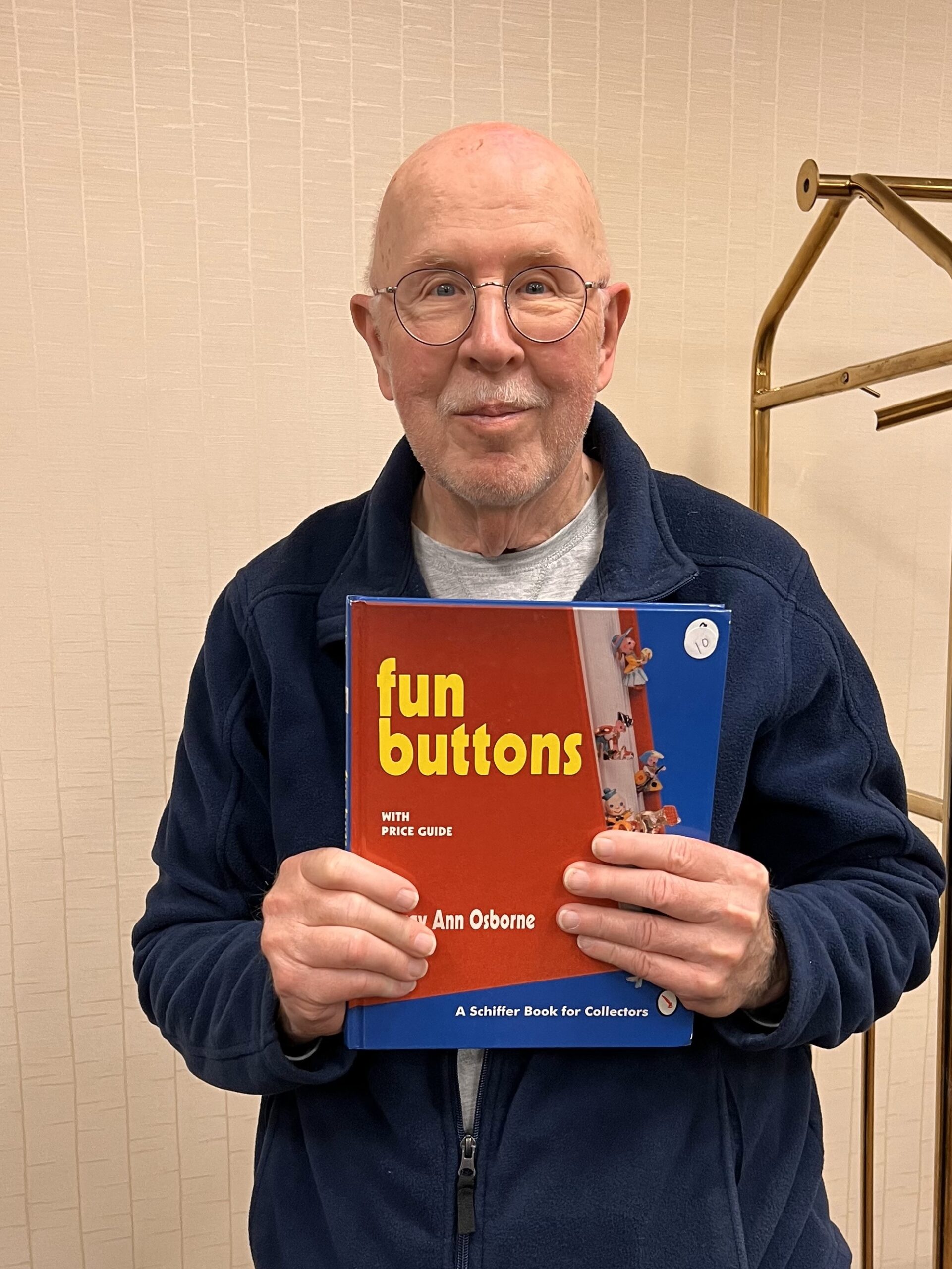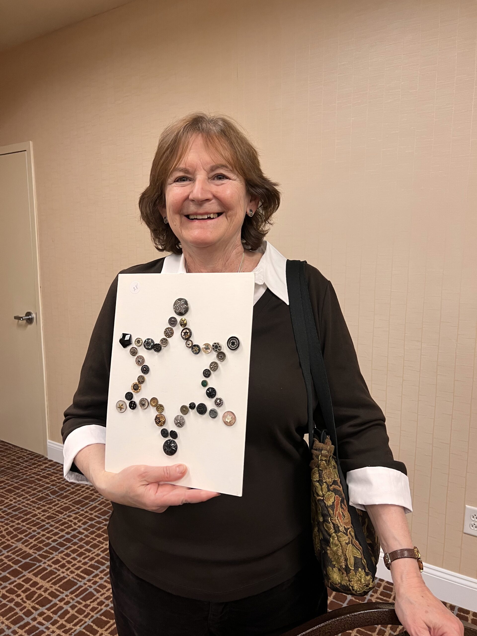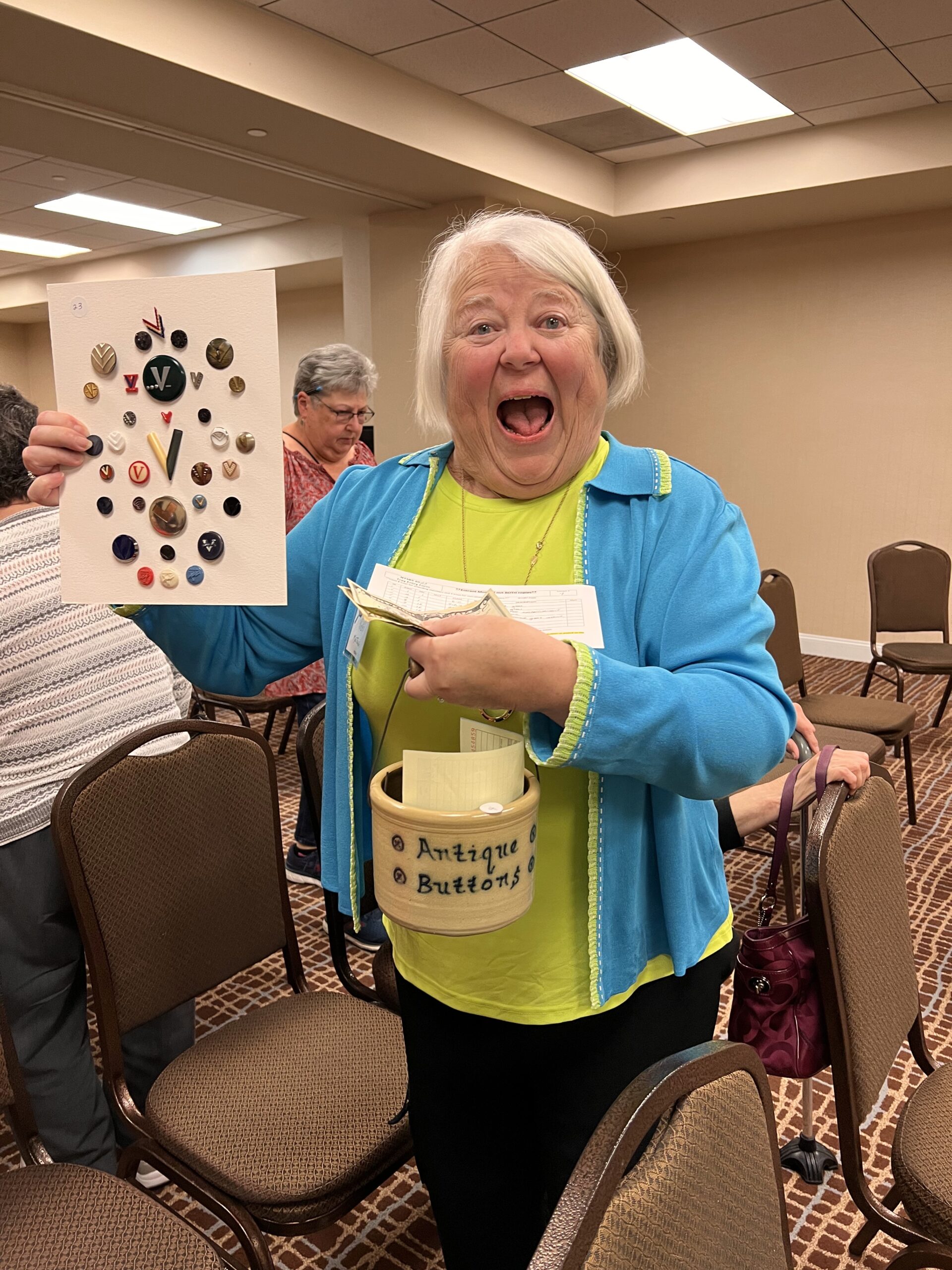 Events included button dealers from across the nation selling buttons, a display of buttons representing the show theme, a button auction, judging of the competitive button trays, and a guest presentation by Sharon Braund and Carolyn Webb where they shared stories about their travels together in search of buttons and shared some of their favorite buttons and button cards.
