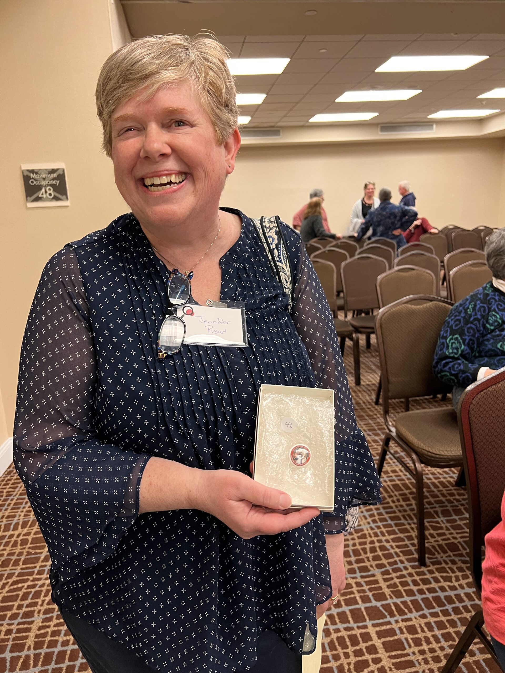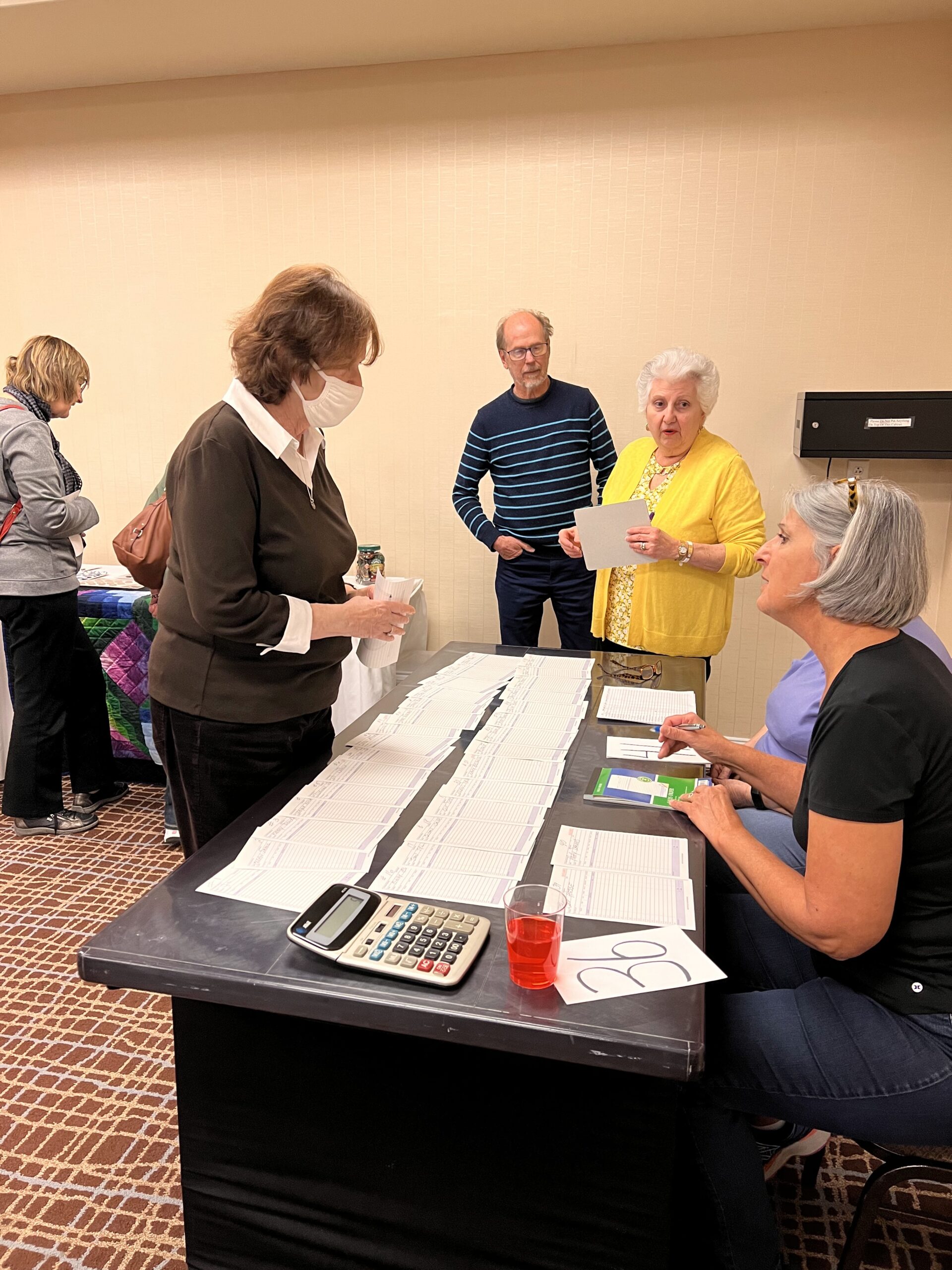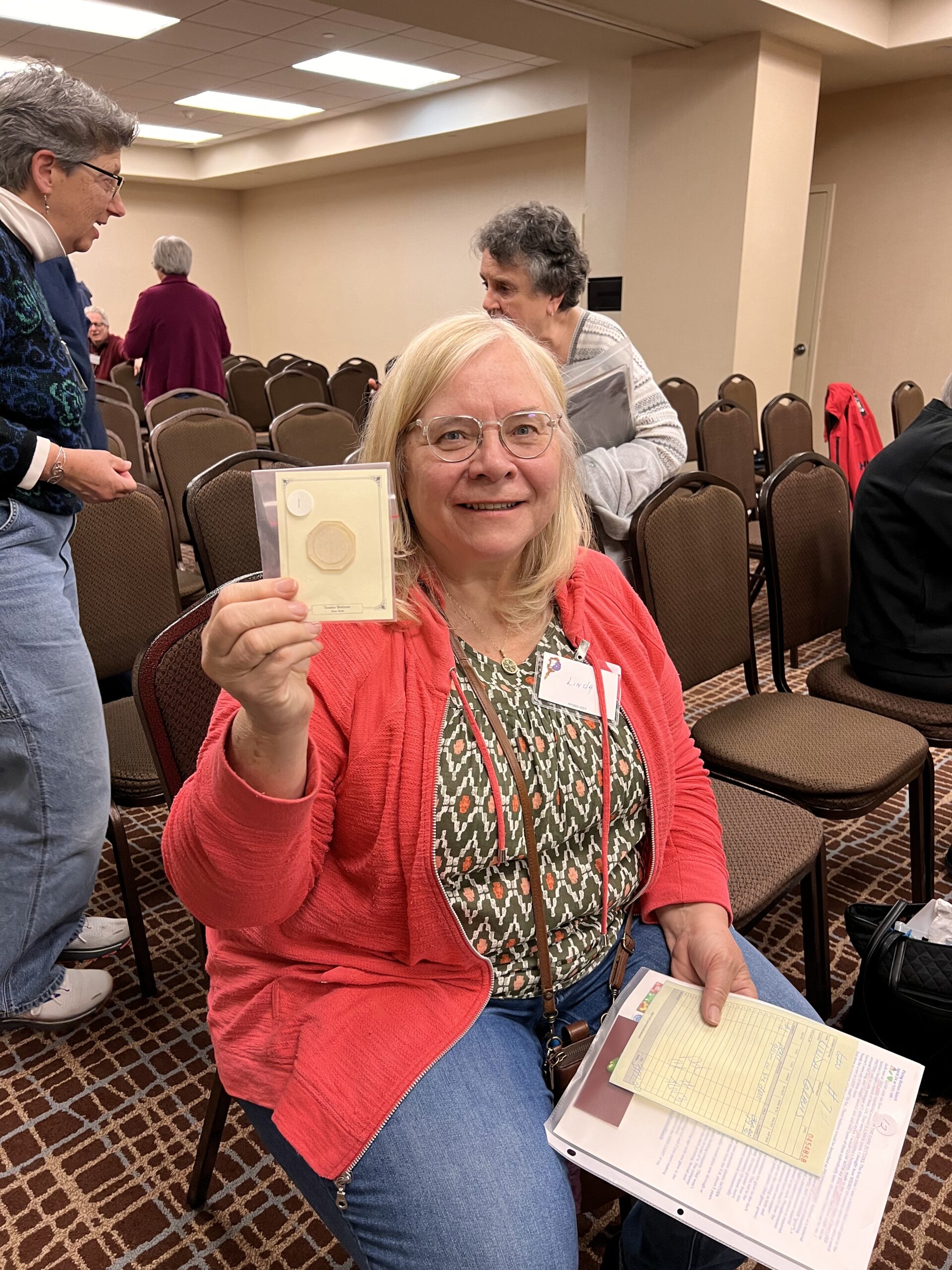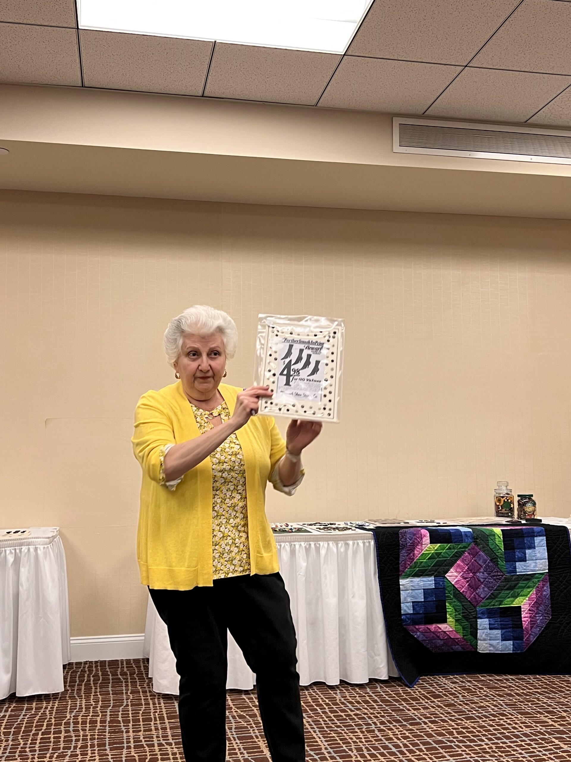 On Sunday morning we had the member’s breakfast buffet and general meeting where competitive tray awards were announced. No nominations came from the floor for President, 1st and 2nd VP, so the three interim leaders, Beverly Hesse, Kathy Arbogast, and Elaine Baur agreed to another interim 1-year term in these positions while they search for replacements. Jai Blackburn was elected as Secretary and Jen Read was appointed as Show Chairperson. The gift of a button representing the show theme was handed out.