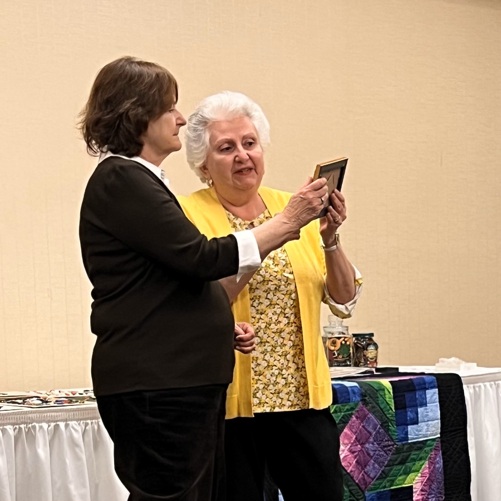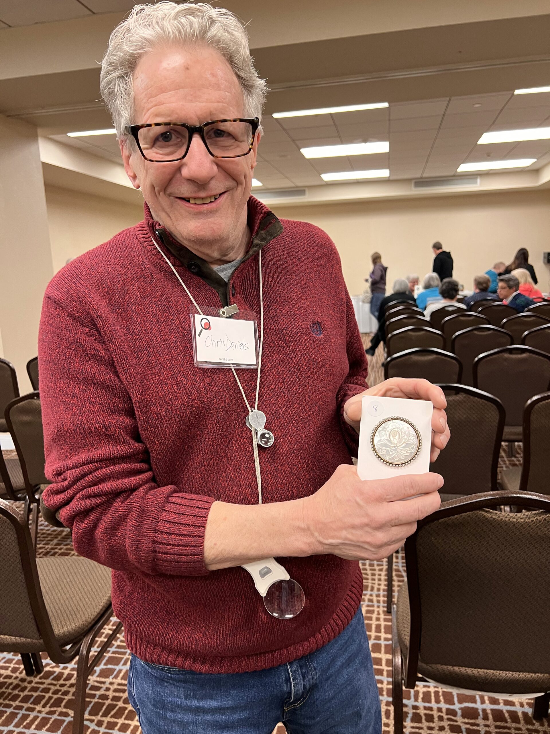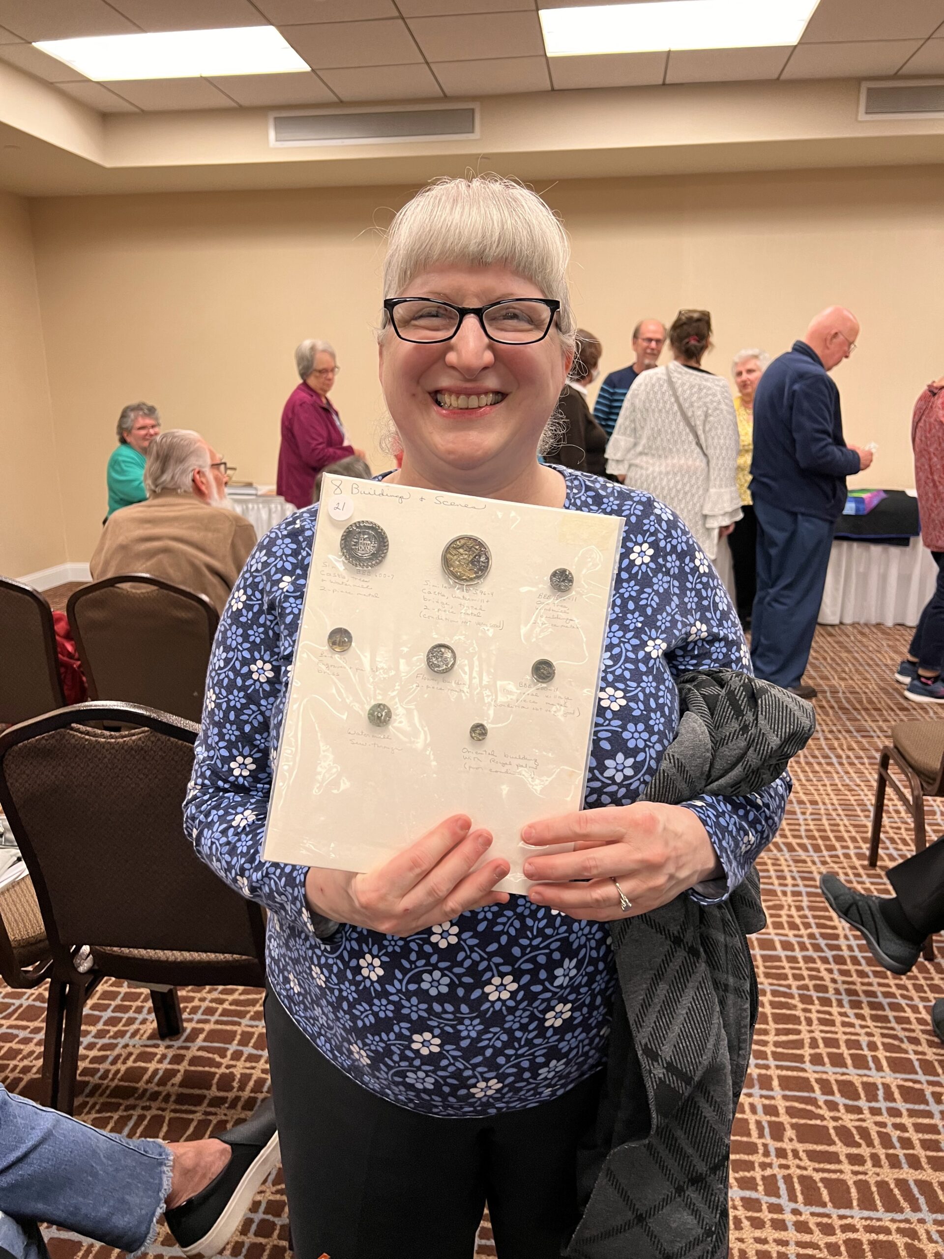 On Sunday morning we had the member’s breakfast buffet and general meeting where competitive tray awards were announced. No nominations came from the floor for President, 1st and 2nd VP, so the three interim leaders, Beverly Hesse, Kathy Arbogast, and Elaine Baur agreed to another interim 1-year term in these positions while they search for replacements. Jai Blackburn was elected as Secretary and Jen Read was appointed as Show Chairperson. The gift of a button representing the show theme was handed out.
