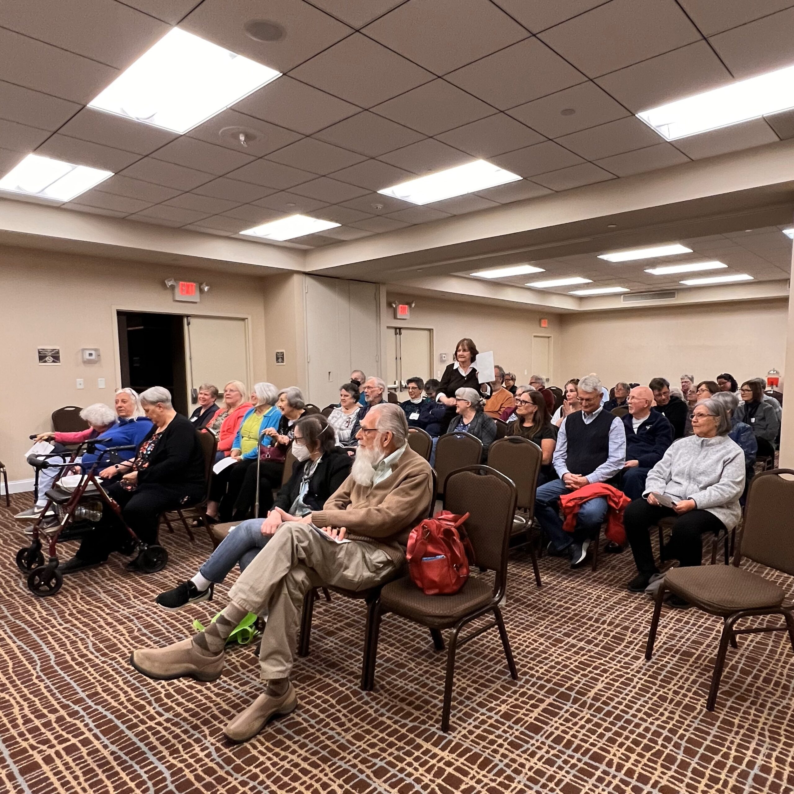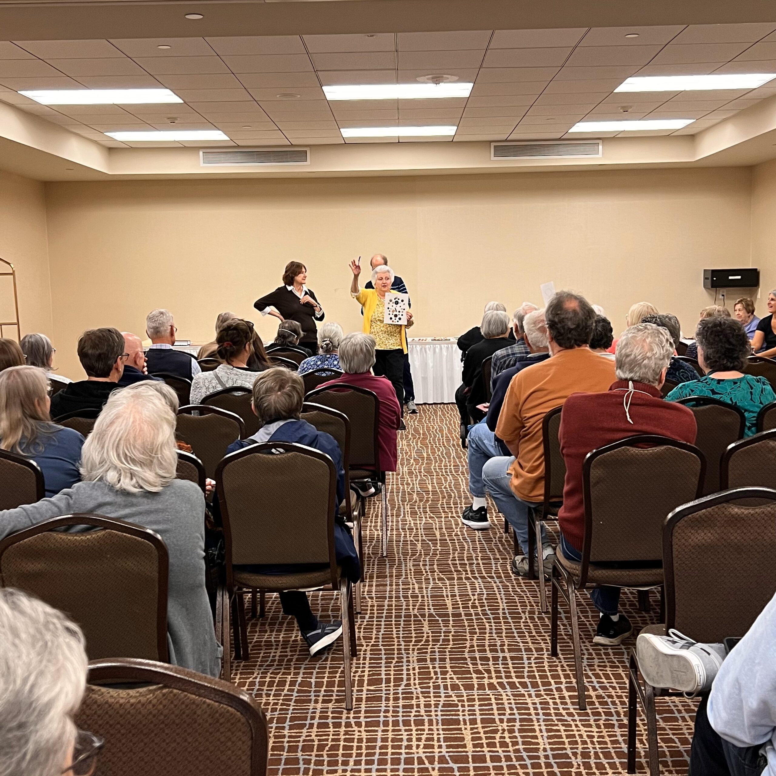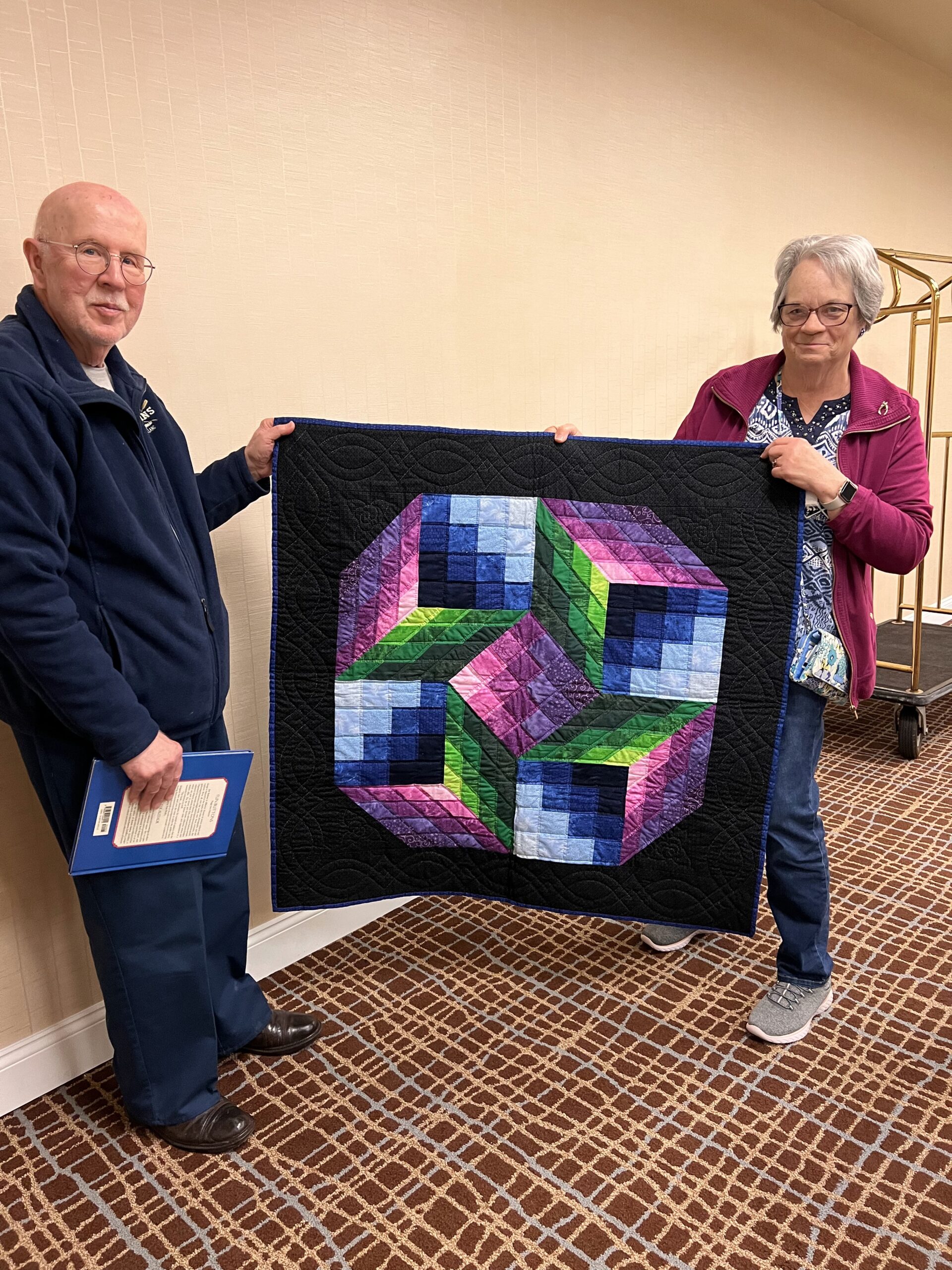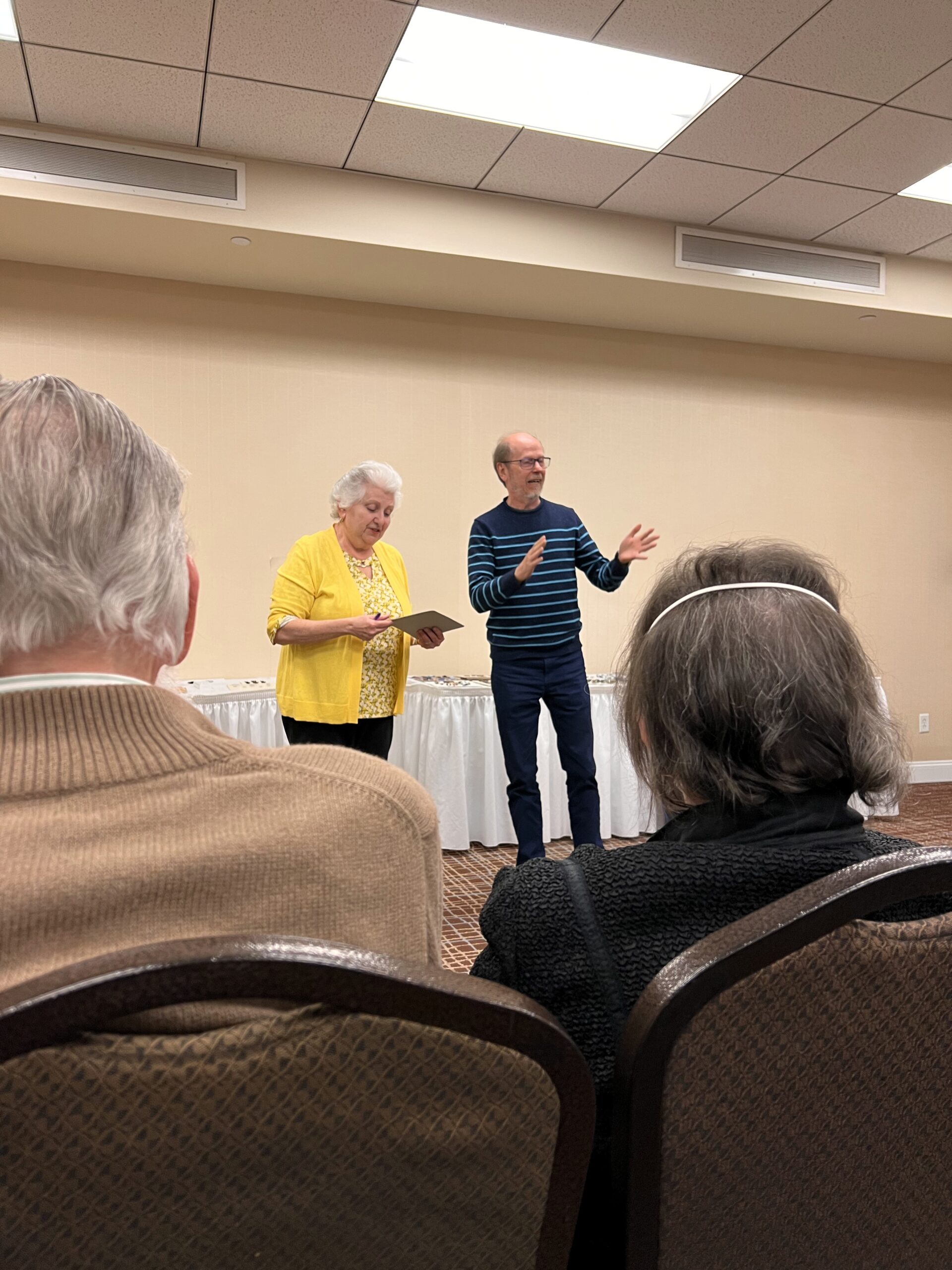 On Sunday morning we had the member’s breakfast buffet and general meeting where competitive tray awards were announced. No nominations came from the floor for President, 1st and 2nd VP, so the three interim leaders, Beverly Hesse, Kathy Arbogast, and Elaine Baur agreed to another interim 1-year term in these positions while they search for replacements. Jai Blackburn was elected as Secretary and Jen Read was appointed as Show Chairperson. The gift of a button representing the show theme was handed out.