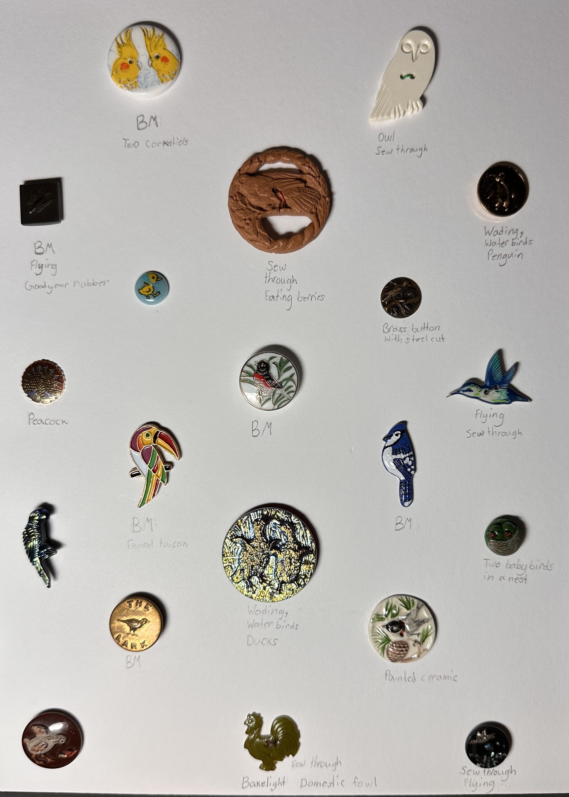 1st – Norah Glor – Div VIIB. Class 17-2, 20 Any Size. Birds assorted. Must include at least one button from each of the four listed subclass (17-2.1, 17-2.2, 17-2.3 + 17-2.4)